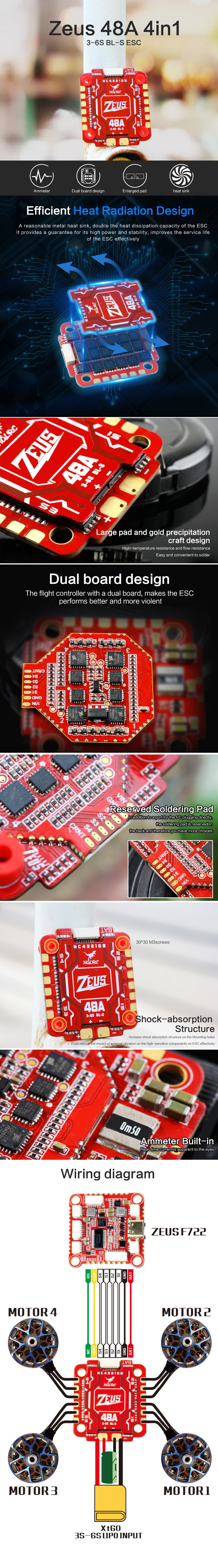 HGLRC Zeus 48A 4in1 ESC 3-6S BL_S with Heat Sink - 30x30mm