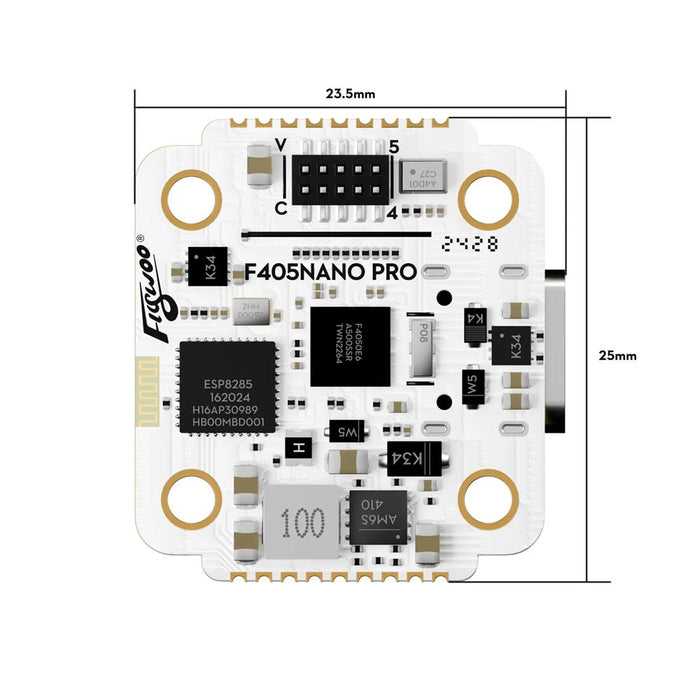 The Flywoo F405 NANO has been completely upgraded! We have further minimized and integrated the FC layout based on the original design. The new Flywoo GOKU GN405 Nano FC V3 w ELRS 2.4g is compact and features a USB-C universal port that is compatible with current mainstream data cables. It also supports the DJI O3 interface, allowing compatibility with high-quality digital transmission modules. Additionally, it has a complete set of six UART ports. Importantly, this flight controller is equipped with a TCXO ELRS high-precision receiver, making it an ideal solution for space-saving in micro drones. This flight controller is compatible with both QUAD and HEX drones, and users can switch between different ESC models. The latest three ESC models include: the 20A (QUAD) plug-and-play ESC, the 20A (HEX) plug-and-play ESC, and the high-performance 35A (QUAD) ESC. These options meet your compatibility needs for different drones, ensuring you have fun during your flights!