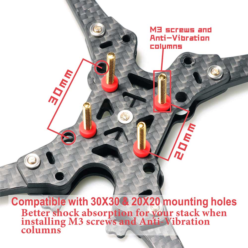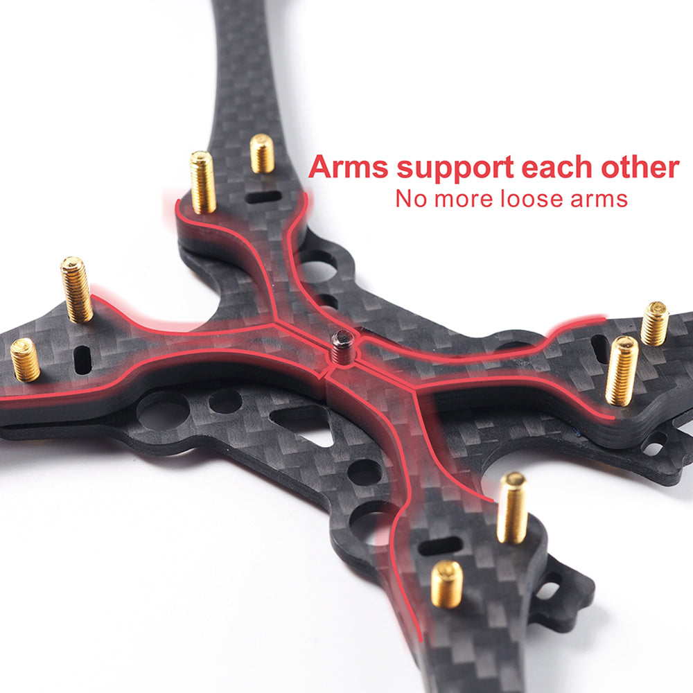Powerful. gorgeous, 5" frame made from 3k Carbon Fiber with 5mm thick arms and 4mm thick arm braces, but only 80gs in weight!